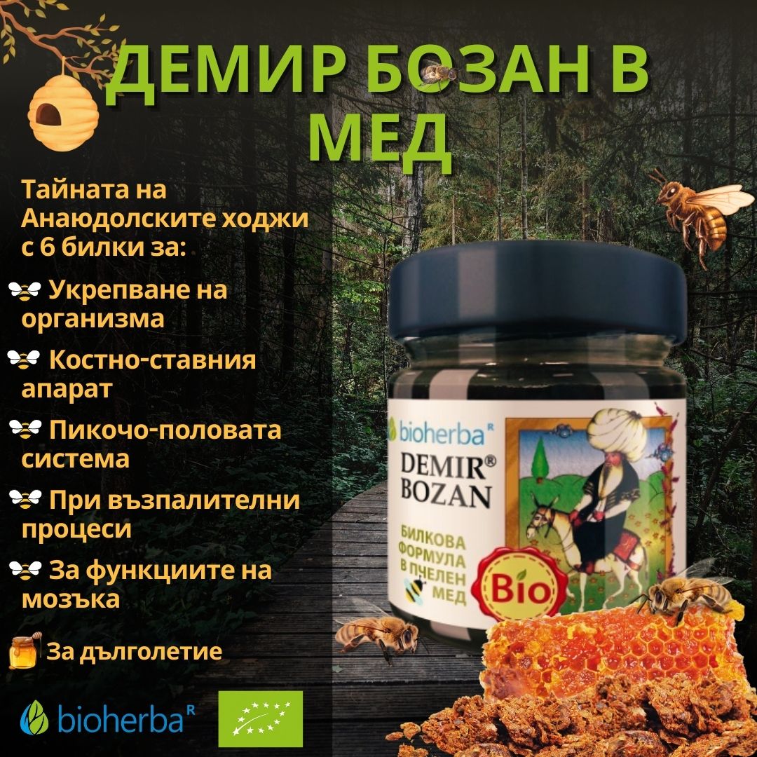 Демир бозан билкова формула в Био пчелен мед - част от иновативната серия хранителни добавки Апитерапия/ Apitherapy на Биохерба - чисти билкови екстракти, витамини и минерали, смесени с висококачествен пчелен мед.