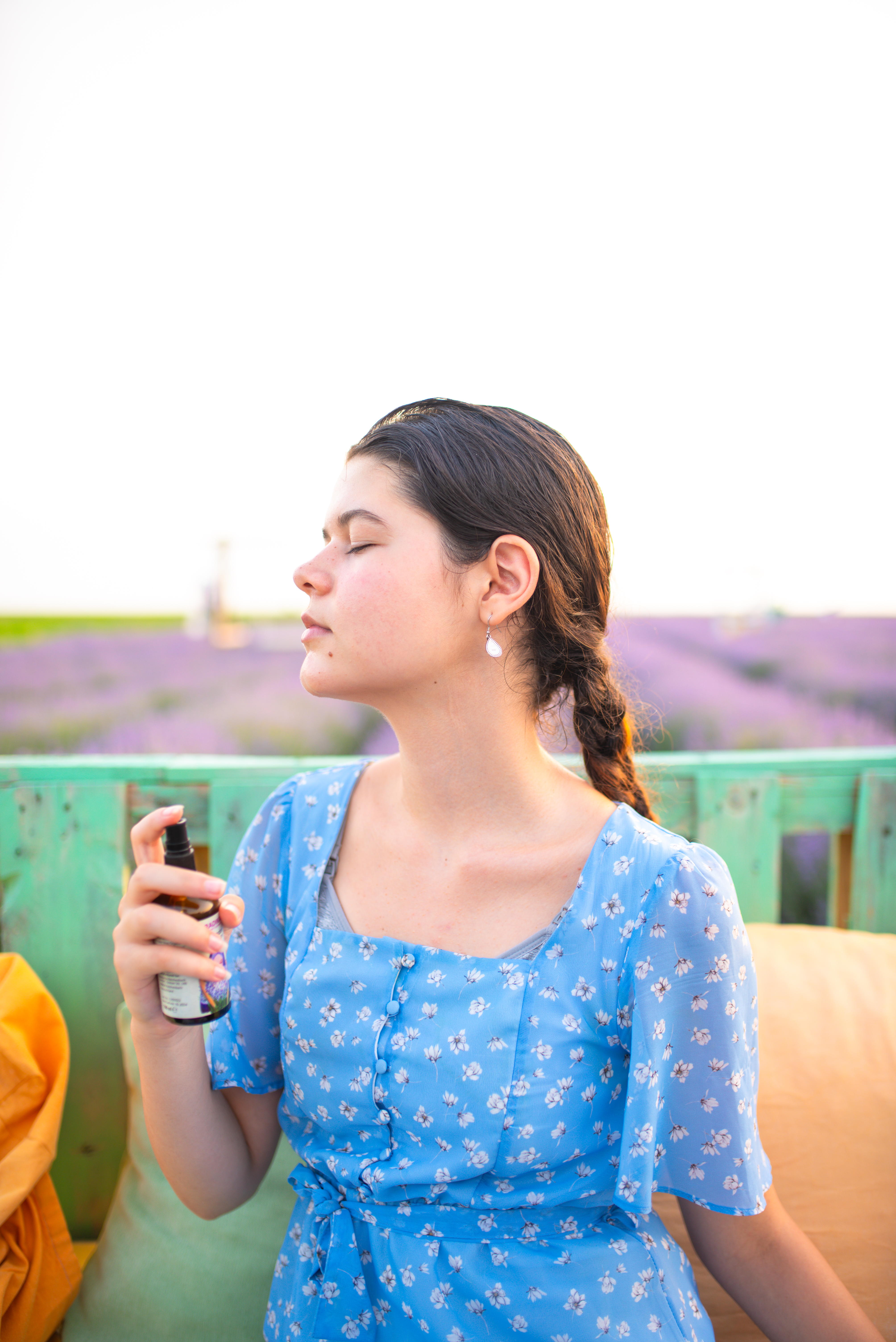 Био ФЛОРАЛНА ВОДА от Българска ЛАВАНДУЛА, тъмен стъклен флакон със спрей, 100 мл