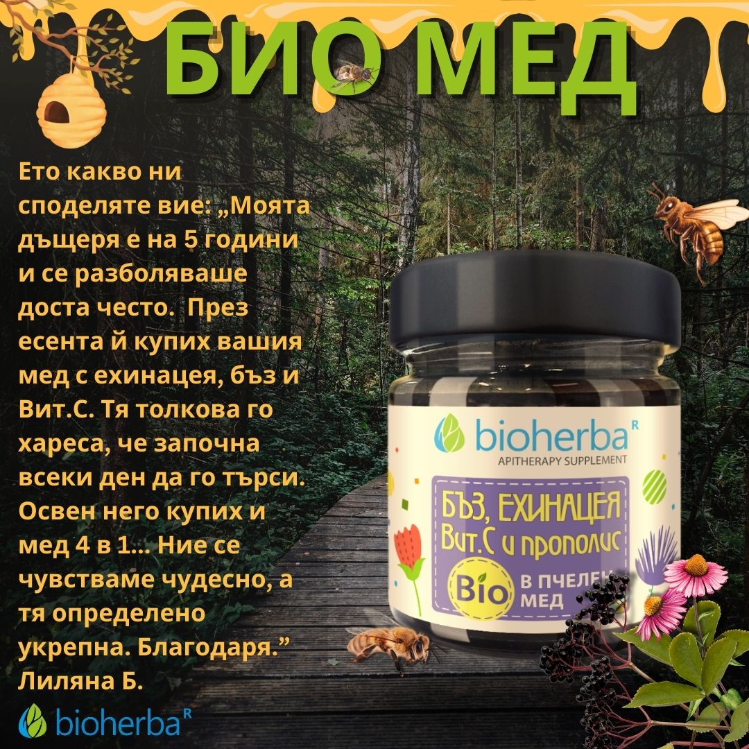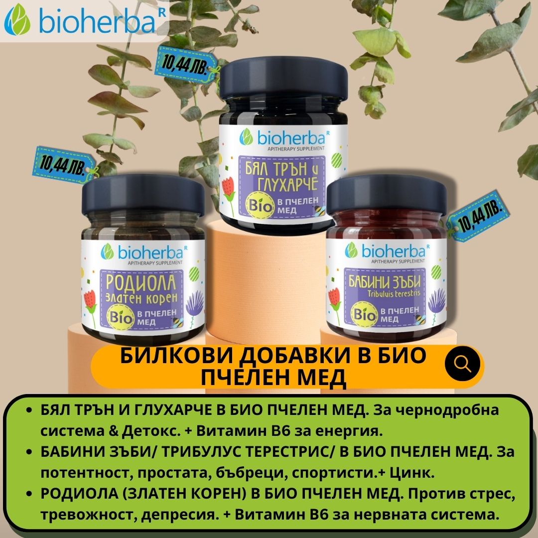 Част от иновативната серия хранителни добавки Apitherapy на Биохерба - чисти билкови екстракти, смесени с висококачествен Био сертифициран български пчелен мед.